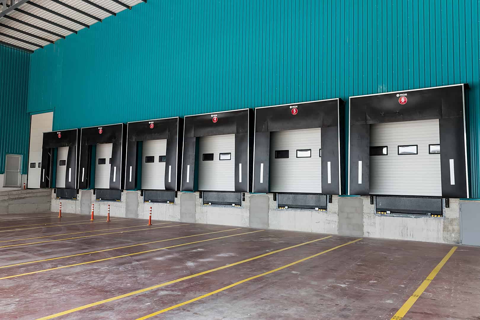 Seksiyonel endüstriyel kapı sistemleri, birlikte uygulandığı seviye ayarlı rampalar ve kamyon kasası sıkıştırıcı PVC körüklerle, işletmelerde sorunsuz ve güvenli biçimde yükleme boşaltma yapılmasını sağlar. Endüstriyel kapı sistemleri, tavana paralel kayarak açılması ile mekandan tasarruf sağlanır ve kapı açıklığı net olarak kullanılabilir. Endüstriyel kapı sistemleri, fabrika, depo veya binalarda geçiş aralığı ve yüksekliğine uygulana olarak üretilebilmektedir.